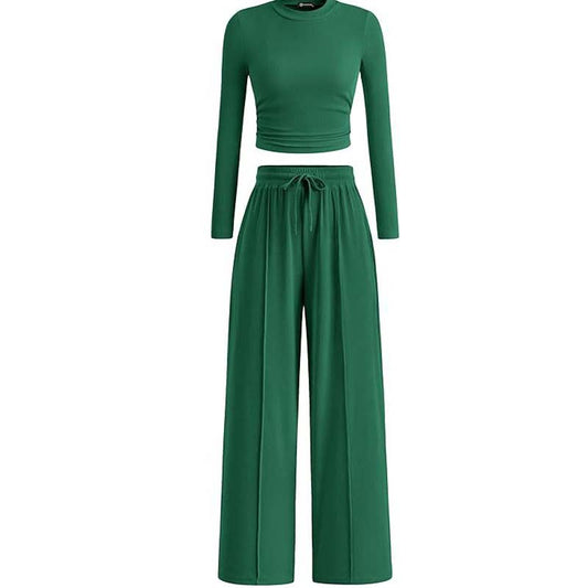 Wide-Leg Lounge Set for Women Stretchy Crop Top & Pants